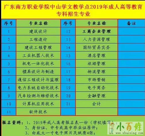 广东南方职业学院2019年成人高等教育招生专业